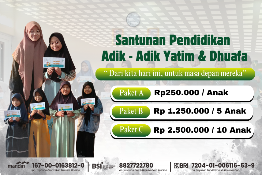 Santunan Pendidikan hadir untuk mendukung adik-adik yatim dan dhuafa agar terus semangat belajar. Setiap bantuan yang dititipkan menjadi bekal ilmu, senyum harapan, serta amal jariyah yang tak terputus.